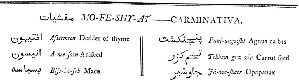 Materia Medica in Arabic & Persian, Shirazy, 1793