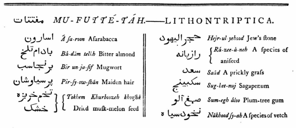 Materia Medica in Arabic & Persian, Shirazy, 1793