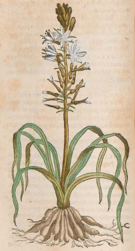 6. Inflammation of the Breast or Testicles, Asphodel root decocted with feces of wine and made into a plaster. (Botanicon Continens Herbarum, Theodore Dorsten, 1540)