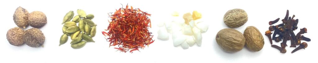 The last Four drugs (Clove, Nutmeg, Green and Black Cardamon) are called the Four Excellent Medicines, or the Four Warming Medicines in Tibetan Medicine.