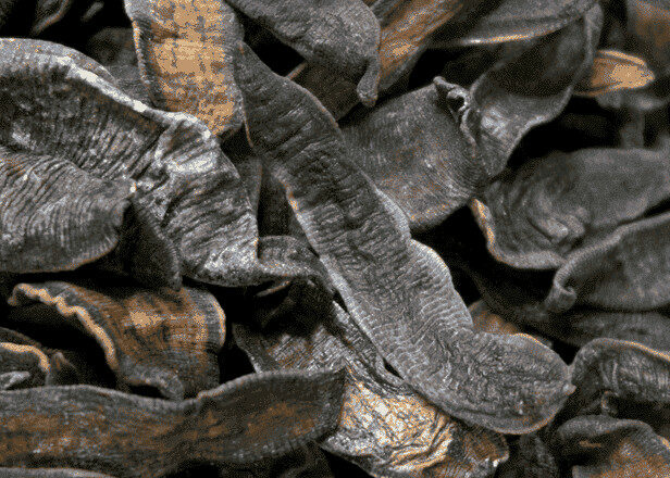 “When collected, they are filled into a bamboo tube and kept there until dried. Next they are soaked in rice rinse water for one night, then dried in the sun. Then fry in lard collected in winter until scorched and have a yellow color, and may then be used”. (Ben Cao Gang Mu)