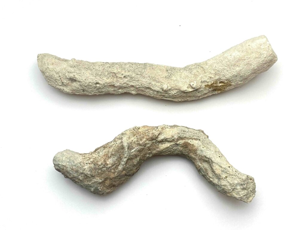 Osteocolla is a medicine whose identification was long obscure. It is a calcium tufa formed around plant stems or tree roots in sandy areas, usually coastlines. It is heavy, hard, white or pale grayish and brittle, usually with a hollow core where the organic matter has rotten away, therefore appearing quite similar to bone. It is composed of calcium with silica and trace minerals. It was long regarded as an excellent medicine to promote healing of bones for which it was used topically and internally, often with Comfrey. For more information on Osteocolla, click here.
