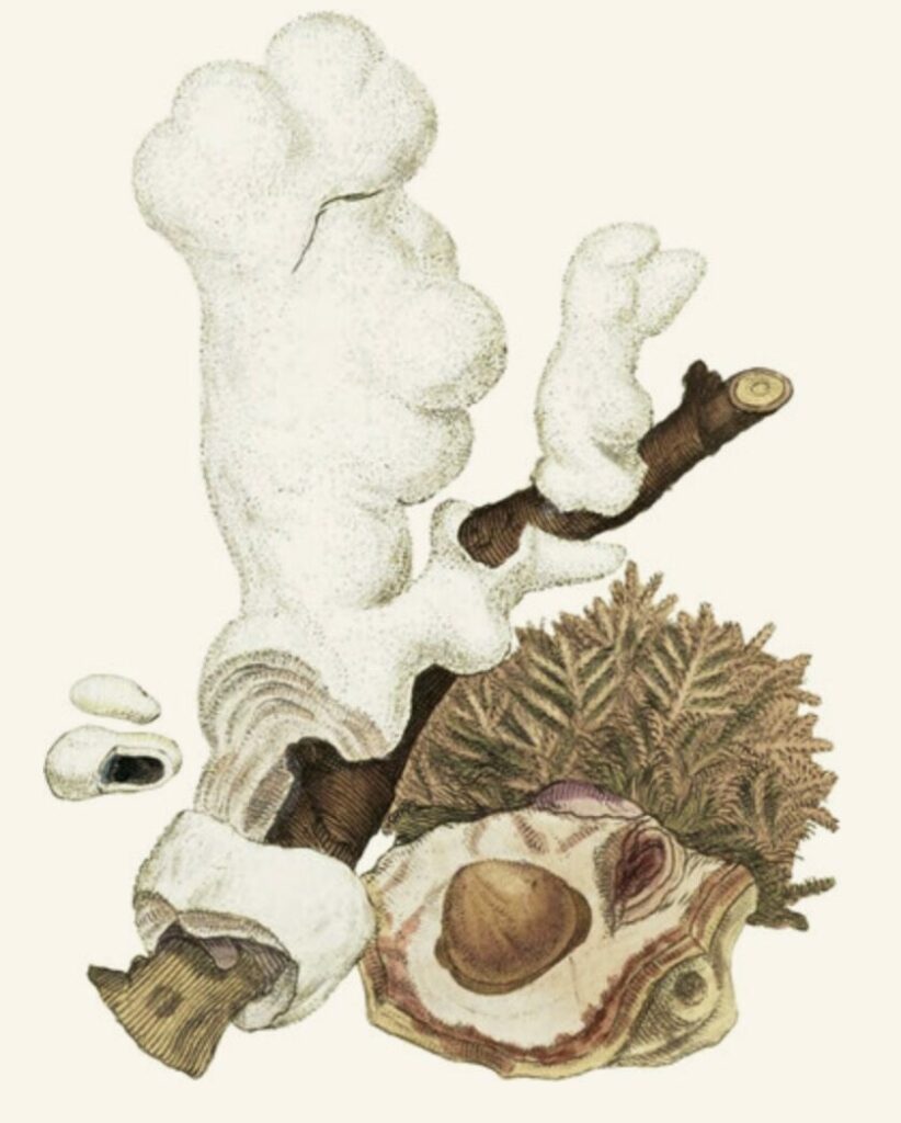 ‘… a fossil substance, found in some parts of Germany, particularly in the marche of Brandenburgh, and in other countries. It is met with in loose sandy grounds, spreading, from near the surface to a considerable depth, into a number of ramifications like the roots of a tree: it is of a whitish colour, soft while under the earth, friable when dry, rough on the surface, for the most part either hollow within, or filled with solid wood, or with a powdery woody matter’.