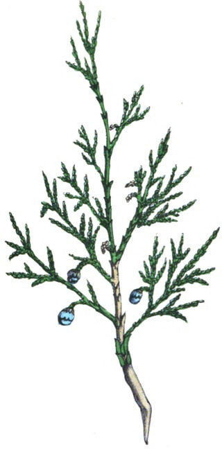 ‘Of the herb savin, known as “brathy” by the Greeks, there are two varieties, one of them with a leaf like that of the tamarix, the other with that of the cypress; for which reason some persons have called this last the Cretan Cypress. It is used by many for fumigations, as a substitute for frankincense; employed in medicine, it is said to have the same effect as cinnamon, if taken in doses twice as large. It reduces gatherings,disperses corrosive sores, acts as a detergent upon ulcers, and, used as a pessary and as a fumigation, brings away the dead foetus. It is employed as a topical application for erysipelas and carbuncles, and, taken with honey in wine, is curative of jaundice.