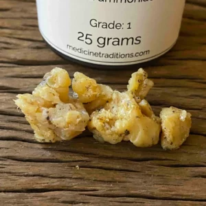 Dorema ammoniacum (syn. Ferula ammoniacum) GRADE 1 SOURCE: Middle East Gum Ammoniac is an aromatic resin of the same family as Asafetida, and is native to Iran and surrounding countries. It has a distinctive and penetrating aromatic odor with a hint of muskiness. This is fresh Grade 1 Gum Ammoniac of a light color and…