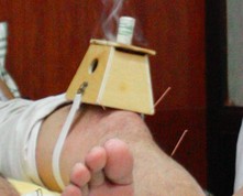 While Acupuncture is fairly unique to Chinese Medicine, Bloodletting is common to most systems to a greater or lesser extent. The ancient Greeks had an elaborate system of Bloodletting and used many points for many conditions. Being a cleansing procedure, it drains off excess. It is good for clearing excess Heat and for Blood Stagnation marked by fixed pain. Moxa applies warmth to specific points by burning herbs.