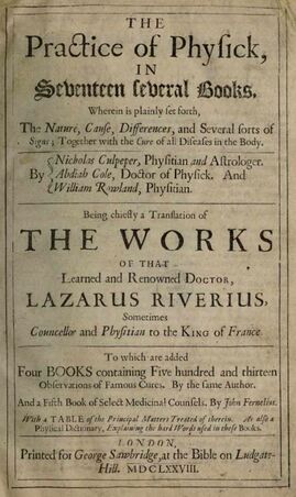 The works of of French Physician Lazarus Rivierus, as he was known, were well respected and were translated into English and other languages. He provides a good overview of Medical treatment drawing on his own experience.